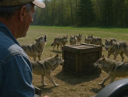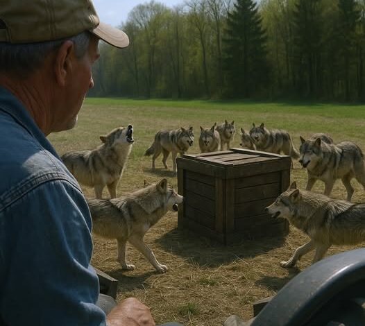 He frowned. Wolves weren’t common in Iowa, and they certainly didn’t make themselves known in broad daylight. Jack stopped the tractor, climbed down, and listened. The cries grew louder until he spotted them—a pack of gray wolves in a small clearing, circling something on the ground.