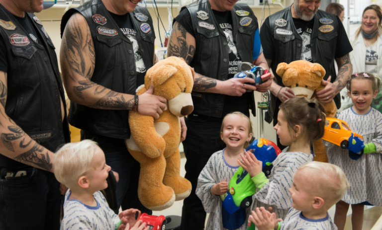 It was three in the morning when the children’s cancer ward at St. Mary’s Hospital suddenly filled with the rumble of heavy boots and the smell of leather. Fifteen bikers had somehow slipped past the front desk and walked straight into the pediatric unit, their chains clinking, tattoos flashing under the fluorescent lights. For the nurses on duty, it looked like a bizarre invasion.