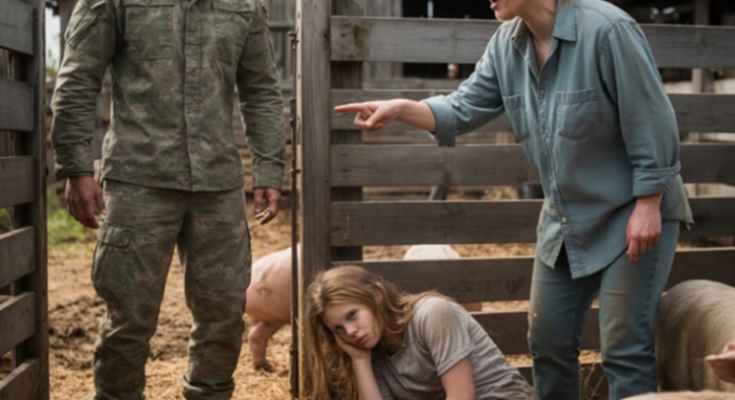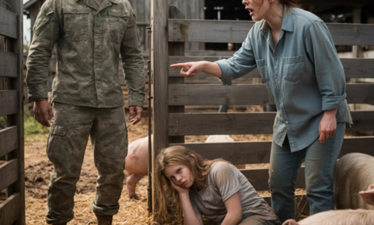 Daniel’s chest locked. He had faced fire overseas, but this—this gutted him. His first instinct was to shout, to demand why. But when he saw her breathing, fragile and shallow, his anger melted into heartbreak. He crouched down, brushed the hair gently from her forehead, and simply looked at her. The pigs stirred but didn’t move, as though they had accepted her into their fold.